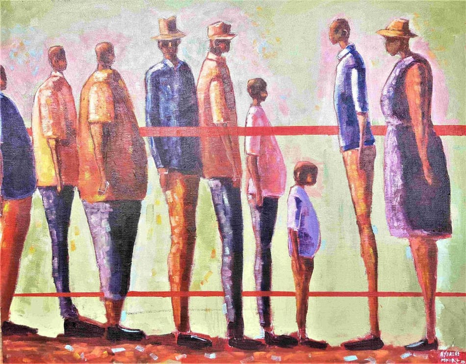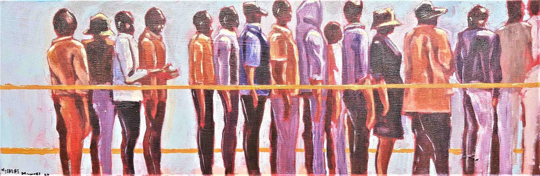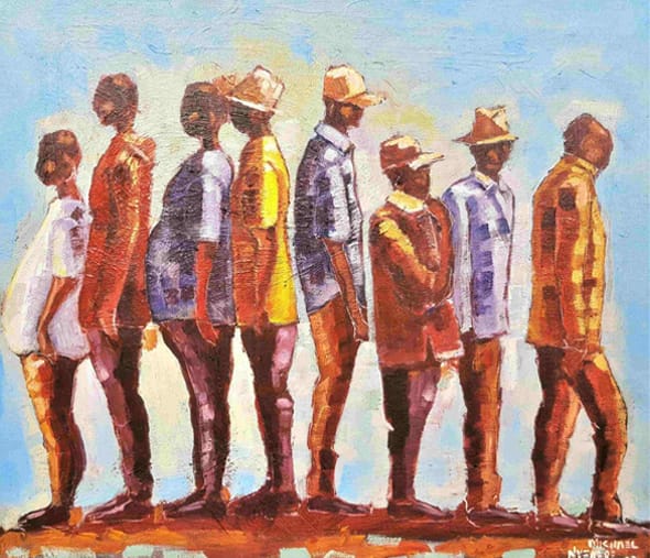 Nyerere Michael Odhiambo is a Nairobi based painter. Nyerere grew up in Nakuru and moved to Nairobi in 2016 where he began his artistic career at Patrick Mukabi`s studio, as a student and later on as his assistant from 2016-2019.