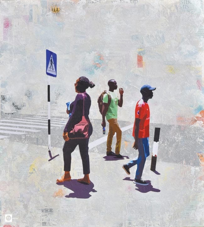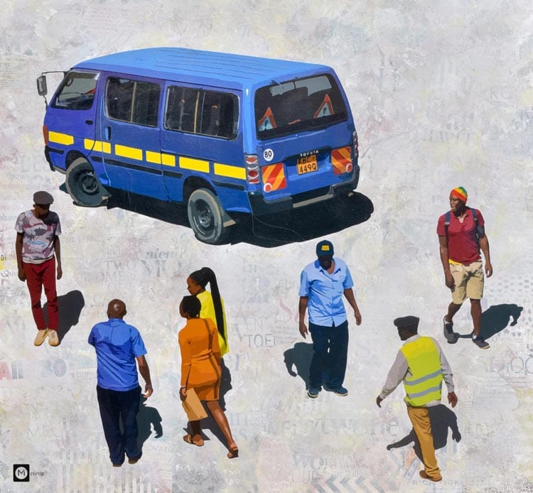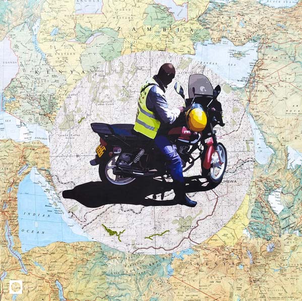 Mainly he uses paper collage as his medium while exploring other mediums to. His work is inspired by his surrounding environment, while it encompasses daily activities that he witnesses in Kenya. Munene Would like his art to document, question and express life in its diverse states.
